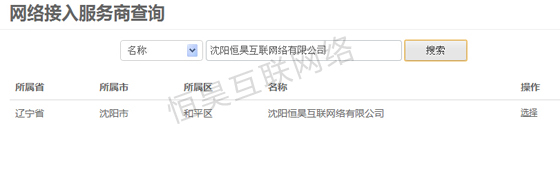 填写准确的接入商和域名注册商信息,但现在系统收录并不全面。可以先进行搜索,如沈阳恒昊互联网络有限公司的被收录了,搜索后进行选择