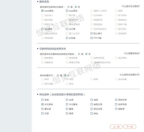 如:普通网站就只需选择下面几项,多选只会增加审核难度。